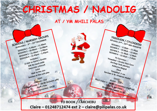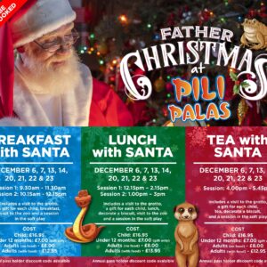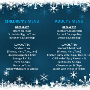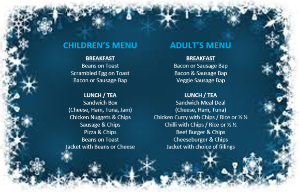 Menu choices for Breakfast, Lunch and Tea with Santa